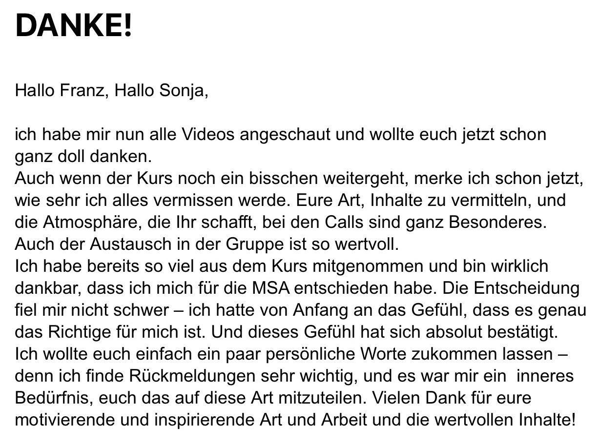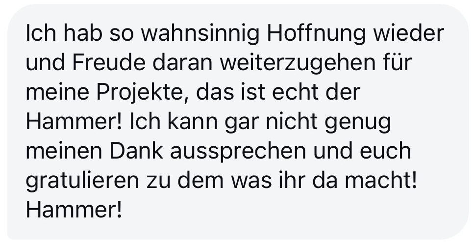 Ihre Erfolge zeigen, was möglich ist, wenn du mit Klarheit, Mut und Umsetzungsstärke an dir, deinem Mindset & deinem Business arbeitest. Garantien geben wir keine, aber wir geben dir Tools, Strategien und Support, um wirklich etwas zu bewegen.