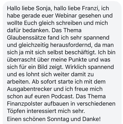 Du hast Klarheit, Kontrolle und spürst Leichtigkeit und Freude, wenn du am Monatsende auf dein Konto schaust.